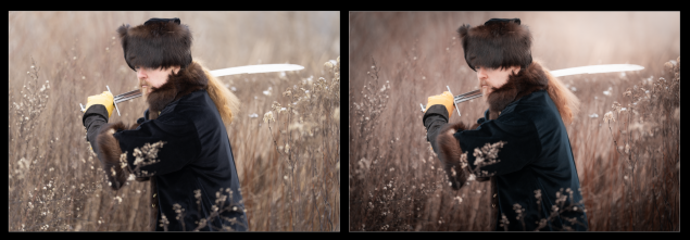 Vľavo surový neupravený RAW, vpravo upravená fotografia. Snažil som sa o filmovejší vzhľad.