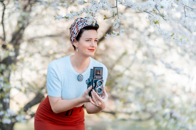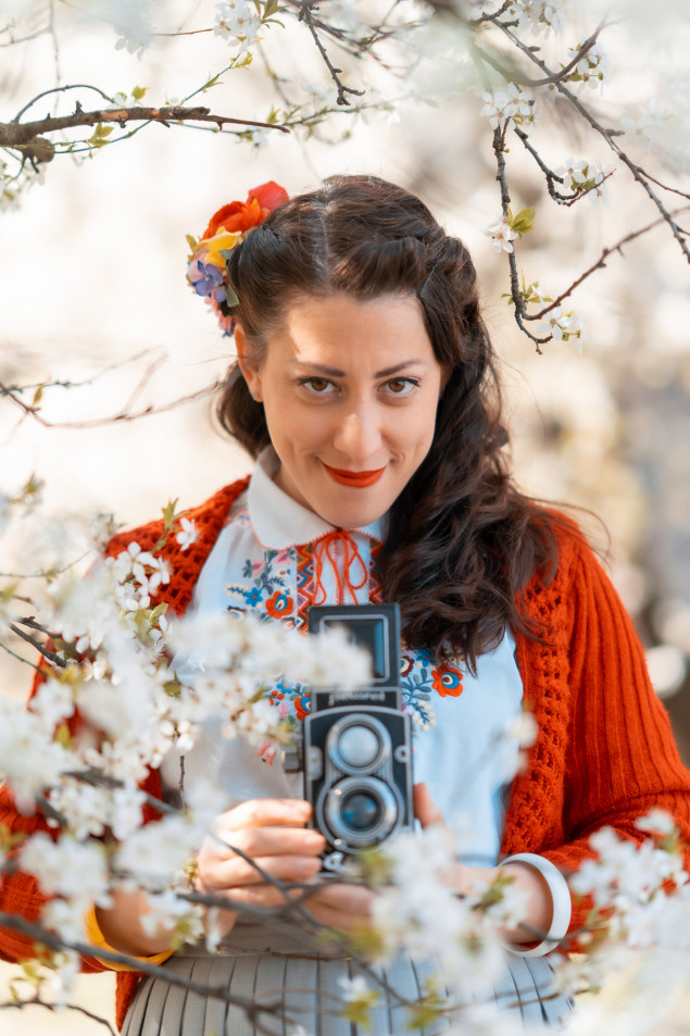 V roku 2022 som objavil za kostolíkom sv Mikuláša (pod hradbami bratislavského hradu) niekoľko rozkvitnutých ovocných stromov, ideálne miesto pre jarné portrétne fotografovanie. Dámy priniesli vybavenie na piknik a ja Flexaret.