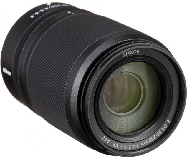 Nikon NIKKOR Z DX 50–250 mm f/4.5–6.3 VR je kompaktný teleobjektív pre DX Z‑mount bezzrkadlovky ponúkajúci ekvivalent 75–375 mm, so stabilizáciou obrazu až do 5 EV, optikou s jedným prvkom z extra‑nízkej disperzie a povrchovou úpravou na potlačenie odleskov, pričom poskytuje rýchle a tiché zaostrovanie vhodné pre foto aj video a programovateľný ovládací krúžok.