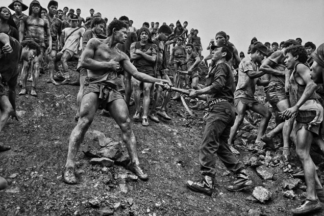 Jeho čiernobiele fotografie majú nadčasovú, takmer biblickú kvalitu. Na fotografiách z tejto série sledujeme viac ako 50 000 mladých mužov postihnutých zlatou horúčkou, pokrytých bahnom a namáhavo pracujúcich v bani 70 metrov pod zemou. Pri prvom pohľade si možno myslíte, že sú to otroci, ich chrbáty zhrbené pod váhou 40 kg ťažkých vriec plných zeminy vypovedajú o náročnosti ich práce. Sú to však zlatokopi, ktorí sem prišli z celého sveta. Dokázal sa k nim dostať dostatočne blízko, aby zachytil jednotlivé detaily, výrazy ich tvárí, a zároveň môžeme sledovať prúdy ľudí, podobné stádam zvierat tiahnucich širokými planinami. Zábery, ktoré Salgado urobil s odstupom, z väčšej vzdialenosti, vypovedajú o neskutočnej gigantickosti a masovosti zlatej horúčky. Z ľudí sa stávajú miniatúrne existencie postihnuté vidinou bohatstva. Cudzinci prichádzajúci do baní boli vnímaní ako podozriví. Salgado si však dokázal získať ich dôveru. Strávil tam celkovo 35 dní, žil so zlatokopmi, spával rovnako ako oni v hojdacej sieti, delil sa s nimi o jedlo, ktoré si tam sám doniesol, trávil s nimi čas od skorého rána do neskorej noci, stal sa jedným z nich. Toto mu umožnilo urobiť fotografie, ktoré dnes obdivujeme. Pracovné a životné podmienky vo vtedajšom najväčšom nálezisku zlata na svete boli neľudské. Vo veľkom sa konzumoval alkohol, na mieste vládlo násilie, a často tam boli privolaní policajti. Na jednej fotografii zo série je robotník držiaci koniec hlavne pušky, ktorou na neho mieri oproti stojaci policajt. Ten má prst na spúšti, pripravený strieľať. Strieľalo sa tam často, a často aj zabíjalo.