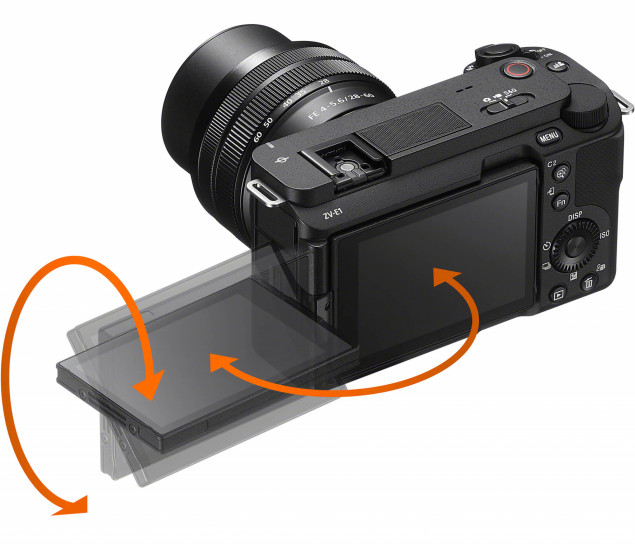Fotoaparát ZV-E1 bol navrhnutý tak, aby sa jednoducho používal. Je vybavený LCD displejom, ktorý sa vyklápa do strany s variabilným uhlom na jednoduché sledovanie. Používateľ má tiež k dispozícii dotykové funkcie počas nahrávania, pohodlné rozloženie ovládacích prvkov a rukoväť optimalizovanú na nakrúcanie vlogov.