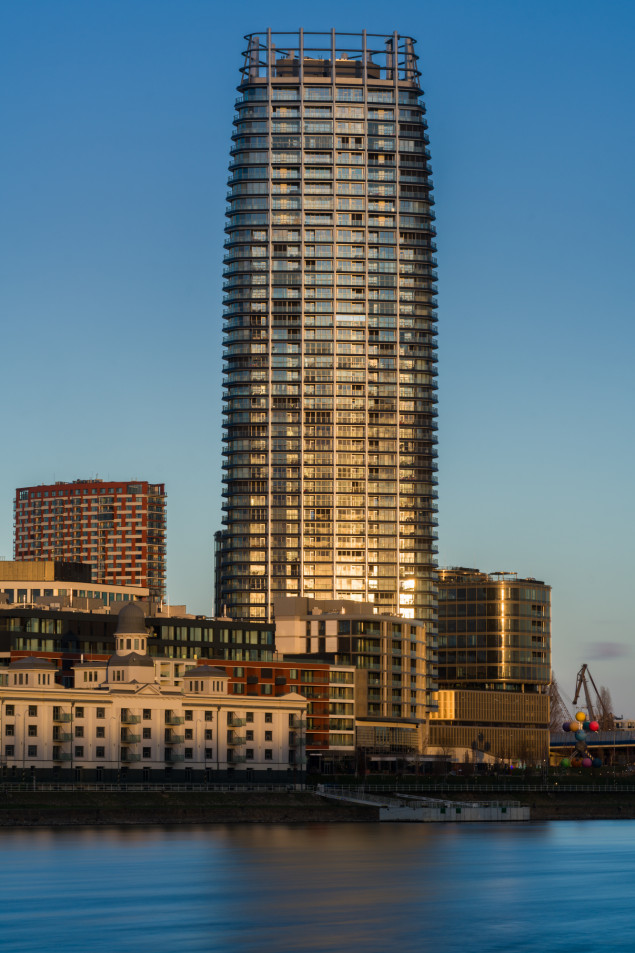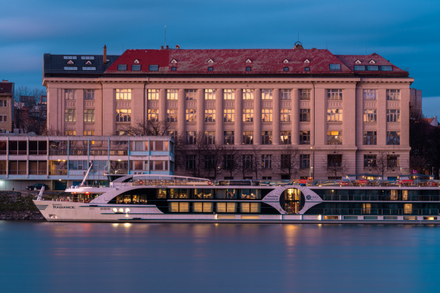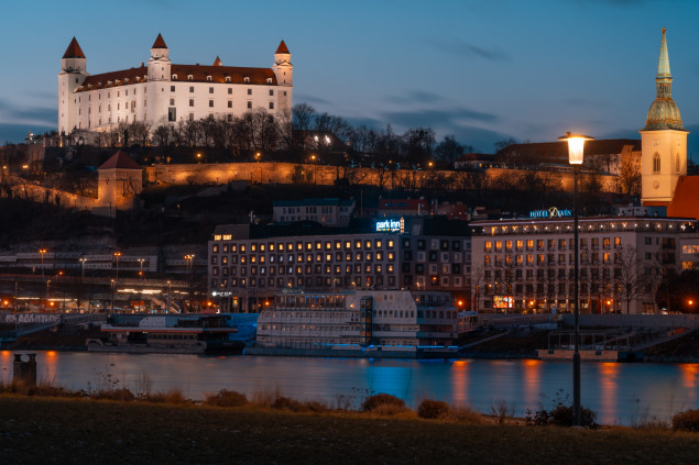 Fotografoval som s o Sony A7R V a objektívom FE 135/1,8 GM. Jediný môj objektív s priemerom filtra 82 mm, použiteľný na fotografovanie panorámy mesta s Dunajom. Využil som zlatú a modrú hodinku.
