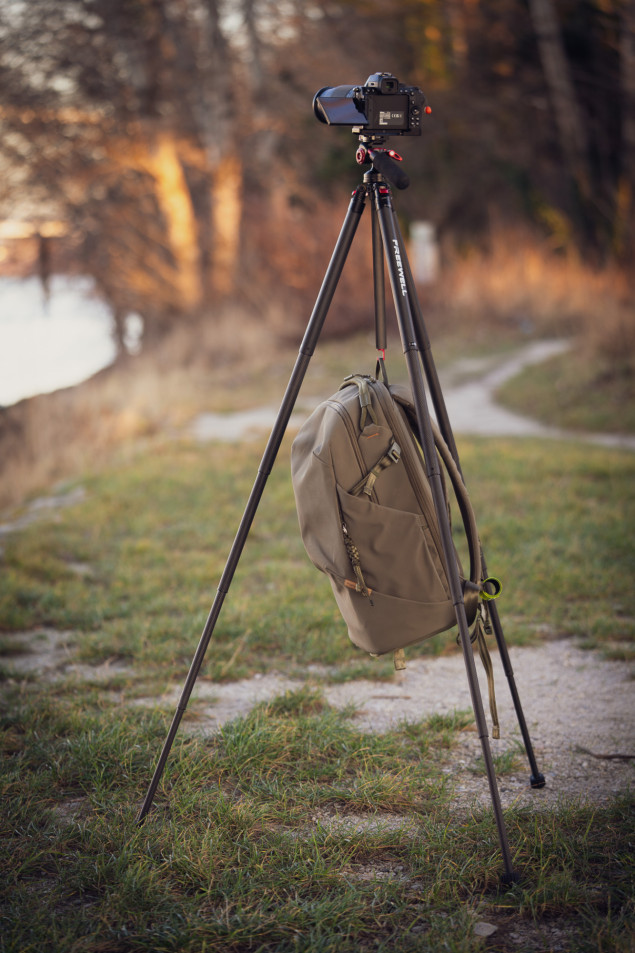 Ľahký statív môžete zaťažiť batohom. Nie však v silnejšom vetre, kedy bude batoh ako kyvadlo.