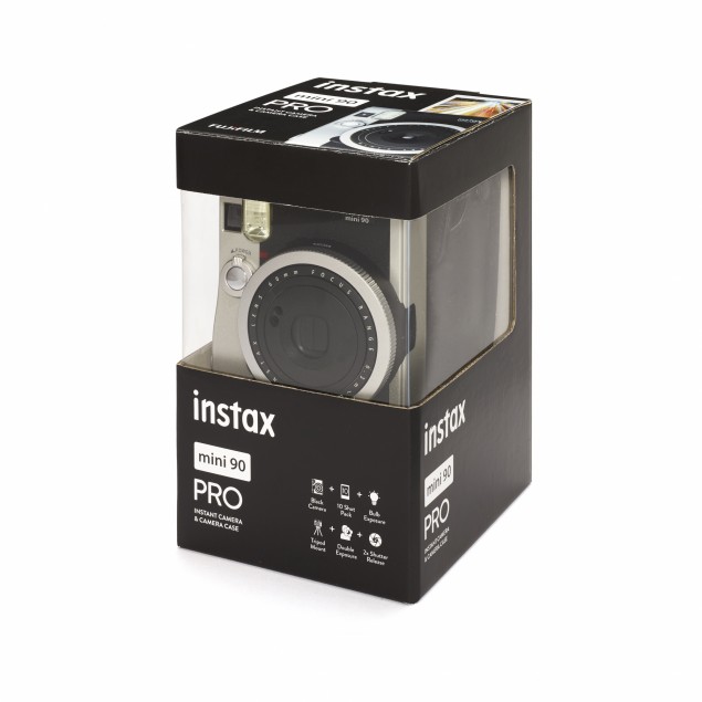 Ako jediný fotoaparát umožňuje úplne vypnúť blesk. Nájdete tu funkciu makro, svetlejšia snímka (L), svetlejšia snímka plus (L+) a tmavšia (D). Pre skupinové fotografie využijete 10 sekundovú samospúšť s možnosťou vytvoriť dve fotografie. Nechýbajú scénické režimy. Okolo objektívu sa nachádza prstenec, ktorý zrýchľuje nastavenie fotoaparátu. Mini 90 má dve spúšte, aby sa vám príjemne fotografovalo na výšku aj na šírku. Nechýba štandardný statívový závit. Fotoaparát je napájaný dobíjateľným akumulátorom NP-45 (nabíjačka je súčasťou balenia). Rovnako ako Mini 9 sa aj Mini 90 dodáva v darčekových baleniach s puzdrom a balením filmu.