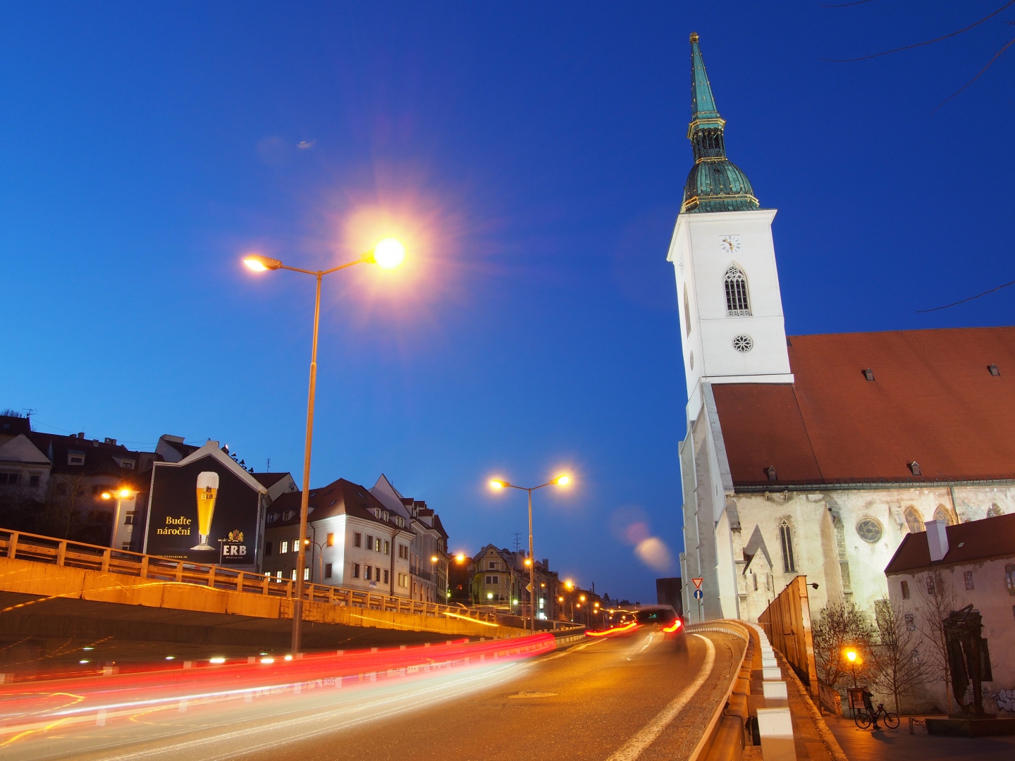 Nočné fotografie sú atraktívne. Samozrejme, záleží na tom, či sa vyberiete fotografovať v správnom čase, keď je v oblohe ešte zvyškové svetlo. Potom s E-PM2 máte naozaj šanci zachytiť večernú atmosféru kvalitne a náladovo. Senzor zvláda nočnú fotografiu na najnižšom ISO (tak sa to má správne robiť) veľmi dobre. Zachytáva množstvo detailov vo svetlách i tieňoch, dobrý kontrast a vyváženie bielej. Samozrejme, odporúčame použiť statív a samospúšť, aby ste niekoľko sekundový záber neroztriasli a neskončili s rozmazanými fotkami.
