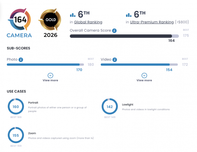 V čase písania tejto recenzie bol HONOR Magic8 Pro na 6. mieste rebríčka dxomark.com. Zdroj: dxomark.com.