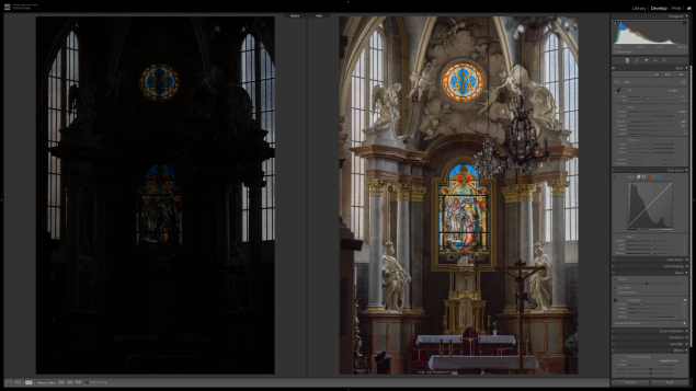 Ukážka korekcie expozície RAW-u preexponovaného o +2EV.
