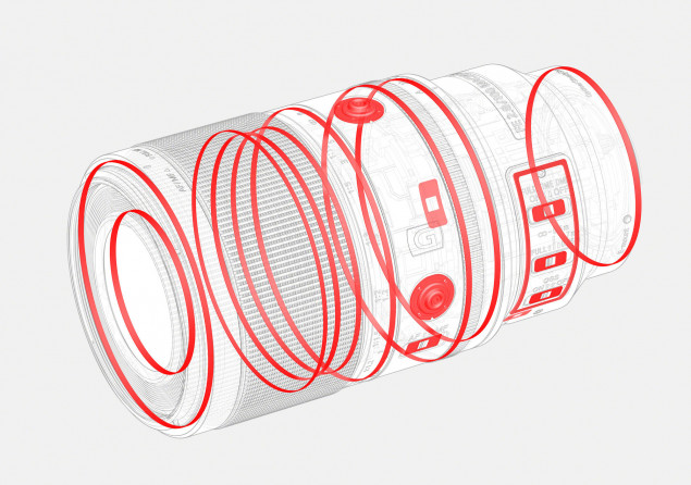 Novinka dizajnovo naväzuje na 90-ku, ale je tu hneď niekoľko zásadných rozdielov a to medzi ne nerátam o 10 mm dlhšie ohnisko. V prvom rade je to objektív najvyššieho radu G Master, 90-ka je „len“ v rade G. Silikónové tesnenia okolo všetkých tlačidiel a prepínačov, gumové tesnenie objektívu a ďalšie vylepšenia tvoria efektívnu konštrukciu odolnú proti prachu a vlhkosti, ktorá maximalizuje spoľahlivosť v náročných vonkajších podmienkach. Predný prvok objektívu má fluórovú vrstvu, ktorá odpudzuje nečistoty a uľahčuje ich odstránenie, ak sa napriek tomu dostanú na povrch objektívu.