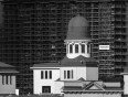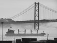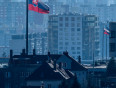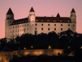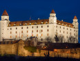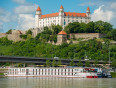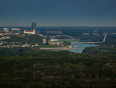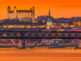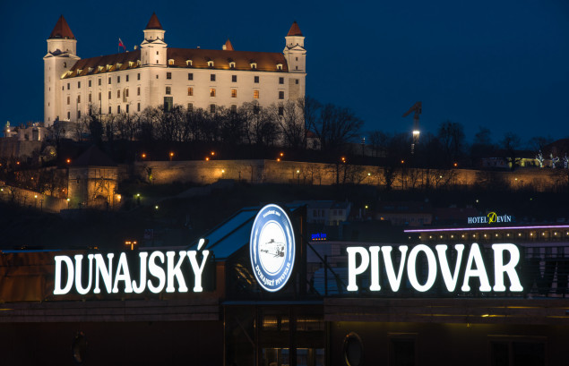 Nápis Dunajský pivovar je na petržalskej strane Dunaja. Hrad je vzdušnou čiarou 1 km.