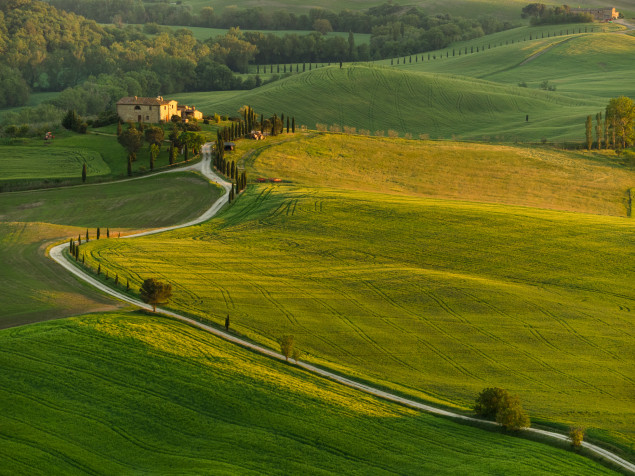 Hospodárstvo je umiestnené v zlatom reze. Naviac k nemu vedie cesta, ktorá utvára vodiacu líniu, ďalšie kompozičné pravidlo.