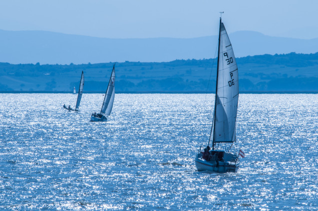 Jachta vpredu je umiestnená na pomyselnej tretinovej línii.