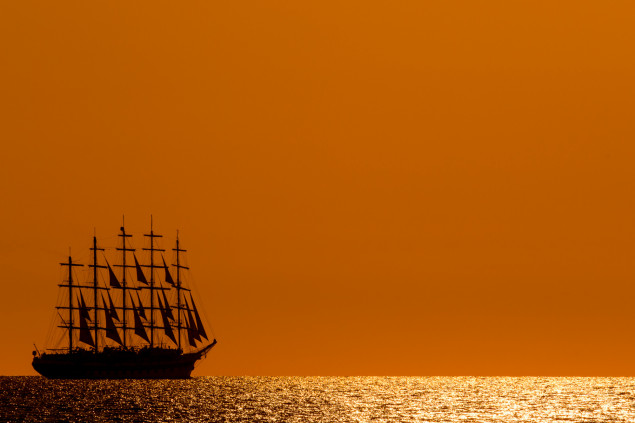 Ani silný teleobjektív nedokáže niekedy dostatočne priblížiť hlavný objekt. Využitím negatívneho priestoru sa tento nedostatok vyriešil. Takto fotografia poukazuje na to, aká je plachetnica malá voči rozľahlému moru a oblohe.