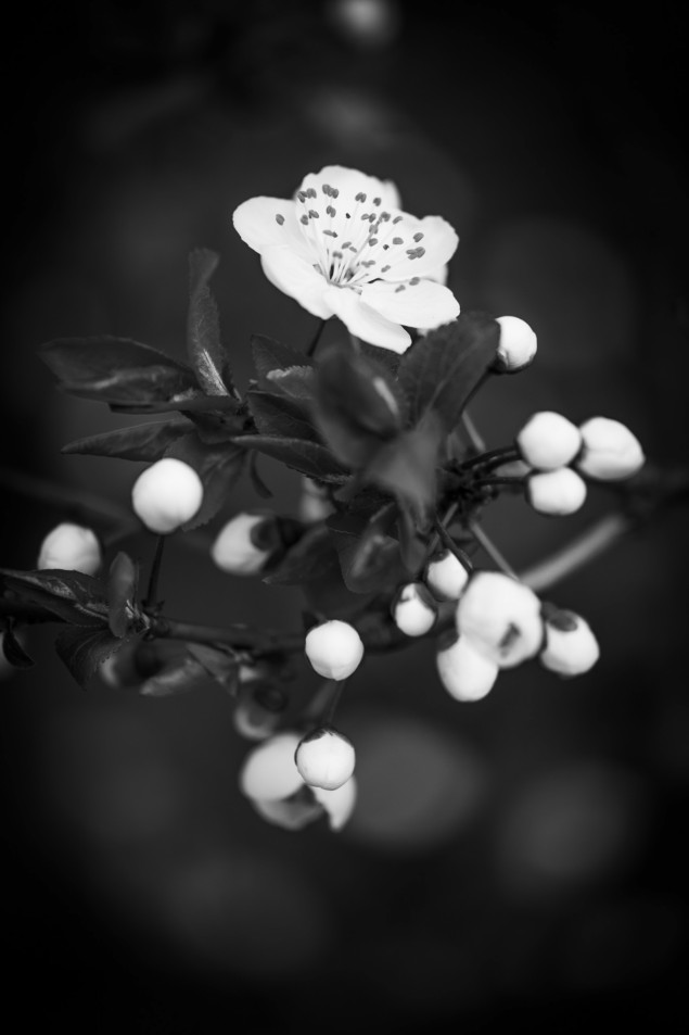 Jednoduchšie už to nejde. Biele kvety kontrastujú s tmavým pozadím.