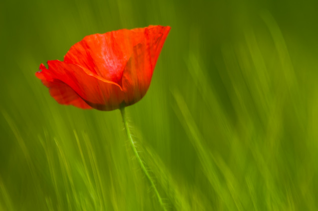 Výrazný kontrast červenej a zelenej.
