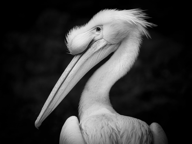Pelikán na pozadí tmavej vody v bratislavskej ZOO.