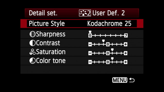 Ponuka obrazových profilov na fotoaparáte Canon.