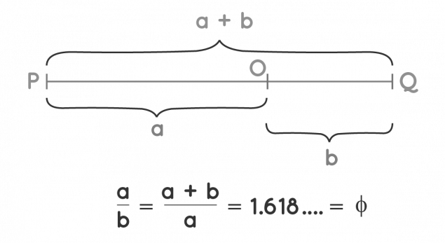 Ak je úsečka rozdelená na dve časti tak, že pomer celej dĺžky k dlhšej časti je rovnaký ako pomer dlhšej časti k kratšej, výsledkom je zlatý rez: