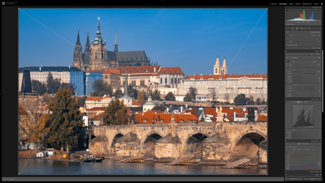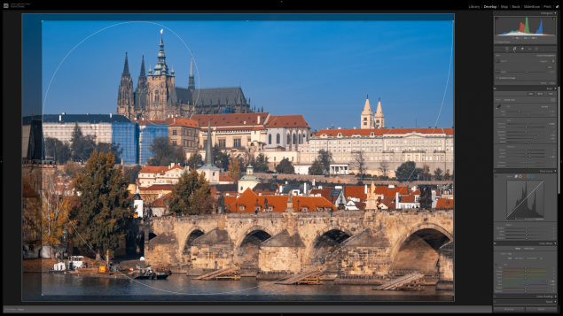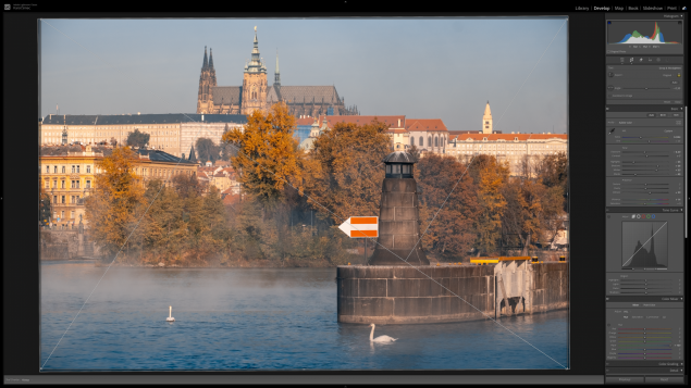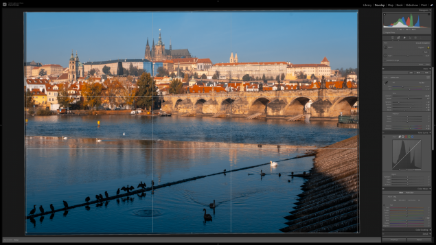 Uplatneneie zlatej špirály pri oreze v programe Lightroom Classic.