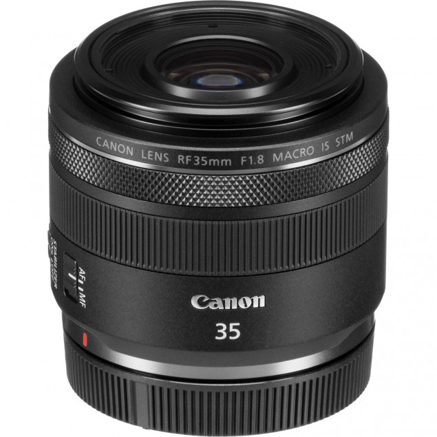 Canon RF 35 mm f/1.8 Macro IS STM je kompaktný a ľahký širokouhlý objektív s 1:2 makro pomerom, určený pre full-frame Canon RF fotoaparáty; ponúka jasnú kruhovú clonu f/1.8, päťstopovú stabilizáciu a tichý STM motor, ktorý umožňuje aj tiché a plynulé ostrenie pre video, pričom konfigurovateľné ovládacie koliesko dovoľuje nastaviť expozíciu priamo na objektíve. Maximálna clona f/1.8 umožňuje lepšiu prácu v zlých svetelných podmienkach a kontrolu hĺbky ostrosti. Päťstopová efektívna stabilizácia obrazu znižuje rozmazanie spôsobené pohybom fotoaparátu. Povrchová úprava Super Spectra redukuje odlesky a duchov pre lepšiu ostrosť a farebnú neutralitu.