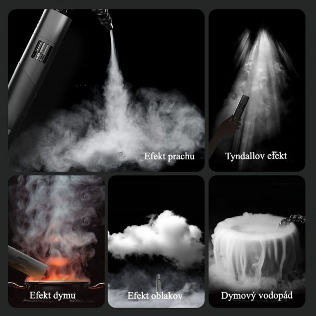 CF5 disponuje funkciou nastavenia hustoty dymu v 25 úrovniach, čo umožňuje presné ovládanie koncentrácie dymu. Pýši sa výkonom 40 W a 12 ml komorou na olej. V porovnaní s tradičnými 20 W strojmi na dym poskytuje okamžite dvojnásobný objem dymu a udržiava maximálny výkon dymu po dobu 10 minút. To zaručuje bohatý a trvalý efekt dymu pre divadelné predstavenia, filmové natáčania, večierky a ďalšie podujatia.