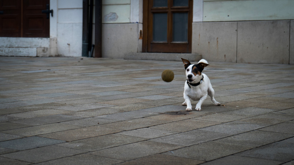 Pes chytí loptu
