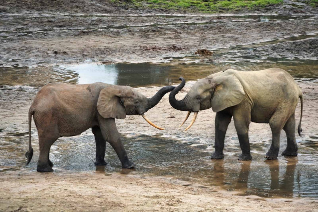 Návšteva miest, kam prichádzajú pralesné slony, byvoly, antilopy a vtáctvo. Jeden z najsilnejších wildlife zážitkov celej expedície.